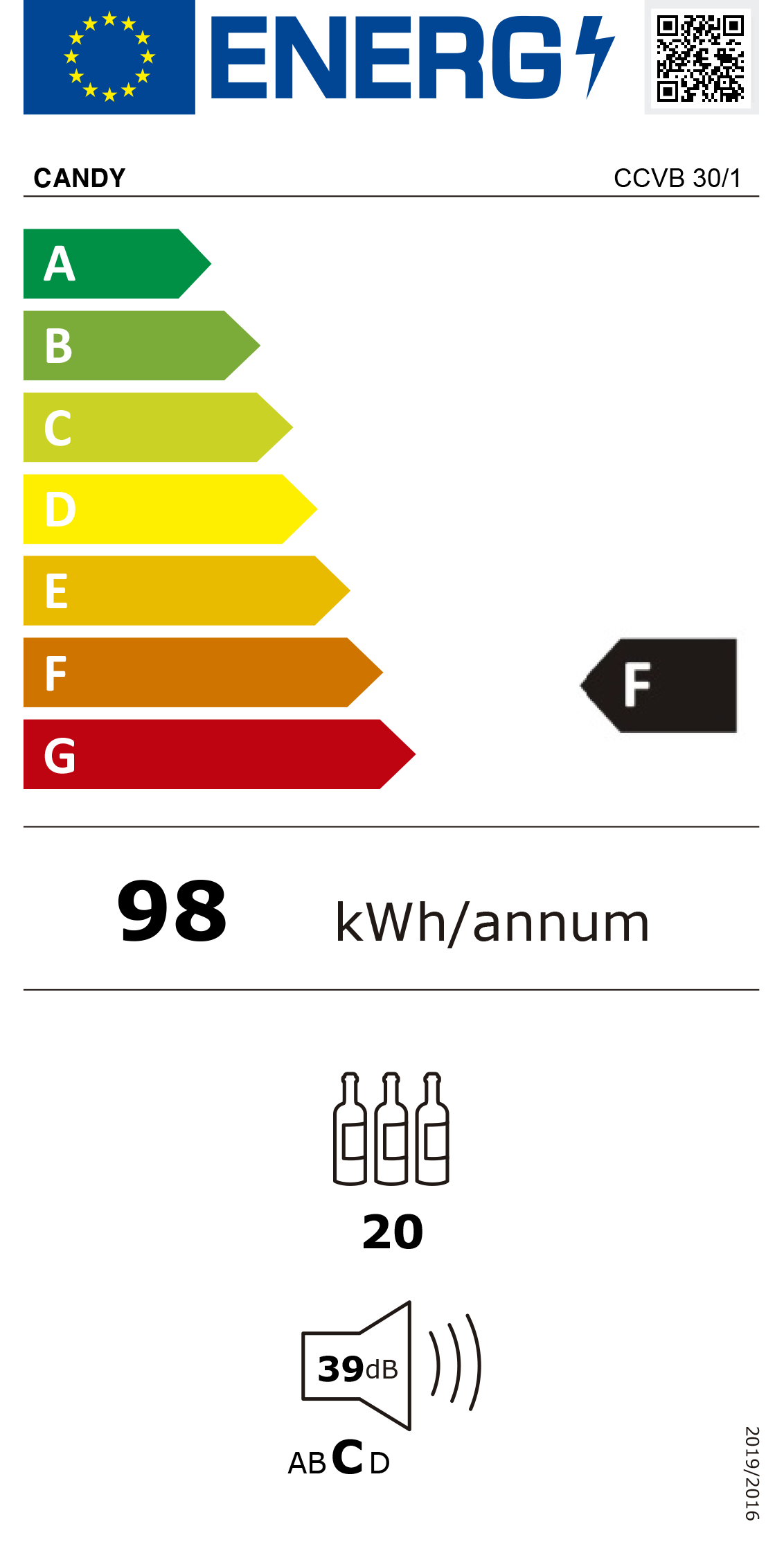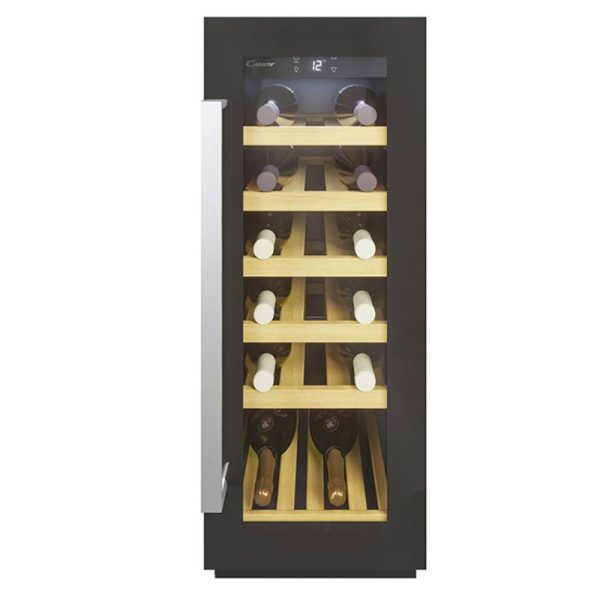 Capacidade total para garrafas: 19 Volume útil: 58 l Zonas de temperatura Mono Zona Descongelação Automática Comandos Digitais Indicador luminoso On/off Número de prateleiras: 6 Prateleira inferior removível Número de portas: 1 Material das prateleiras: Madeira Luz Interior: LED (0,25 w) Nível de ruído (actual): 39 dBA Temperatura atingida no interior: 5º – 22º C Temperatura ambiente Min/Máx: 38º C Classe de eficiência energética: G Cor: Preto Dimensões (AxLxP): 875x295x570 mm Dimensões encastre (AxLxP): 813x305x570 mm