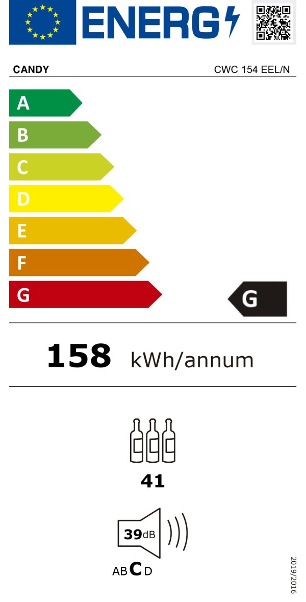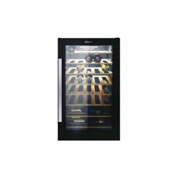 Capacidade total para garrafas: 41 Volume total bruto: 126 l, Volume útil: 121 l Capacidade total para garrafas: 41 Número de compressores: 1 Número de Zonas: 1 Conectividade: WIFI Comandos: Eletrónico Número de prateleiras com ondulação: 6 Material das prateleiras: Madeira Número de suportes para garrafas de vinho: 6 Material dos suportes: Bambu Luz: Integrada no visor eletrónico Nível de ruído: 39 dBA Temperatura atingida no interior: 7º – 18º C Nº de pés ajustáveis Classe de eficiência energética: G Acabamento do Vidro: Transparente, Pega: Externa em metal Dimensão (AxLxP): 845x490x550 mm