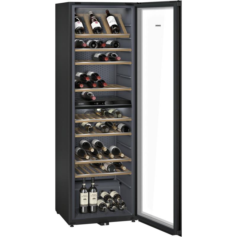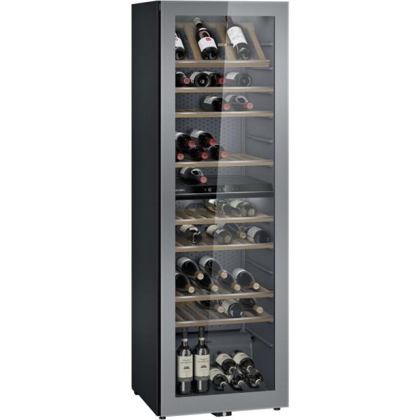 Capacidade de garrafas 199 Capacidade Líquida Total (L) 370 Compressor Consumo de energia 155 kWh/ano Nível de Ruído (dB) 38 Nº Zonas de temperatura 2 Temperatura Mínima (ºC) 7°C Temperatura Máxima (ºC) 19°C Regulador de temperatura Iluminação Porta com Proteção UV Eficiência Energética G Cor Inox, Material Prateleiras Madeira Dimensões (AxLxP): 1860x600x610 mm