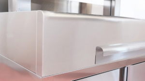 A gaveta inferior com rodas (opcional) permite guardar pratos ou acessórios.