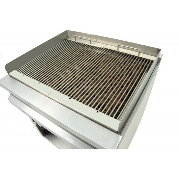 Grelhador de perfil redondo em aço inoxidável, ideal para carne e peixe. Equipado com pedra vulcânica