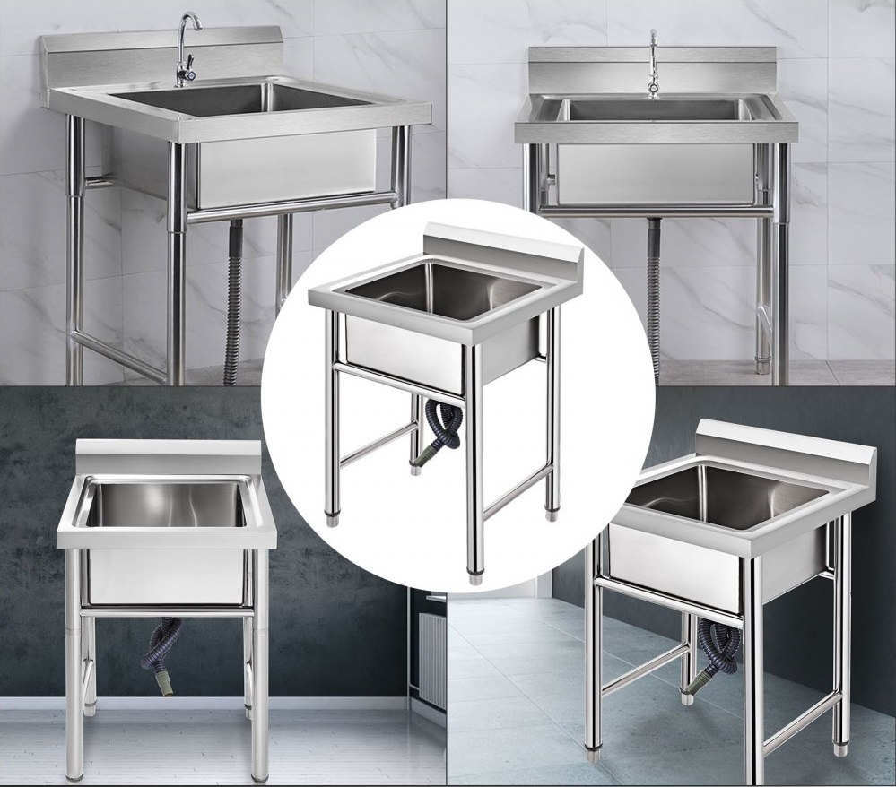 O design de quatro pernas torna este lava loiça de aço inoxidável estável no chão. Possui suportes cruzados para maior estabilidade. Essas pernas possuem niveladores ajustáveis para permanecerem estáveis em pisos irregulares.