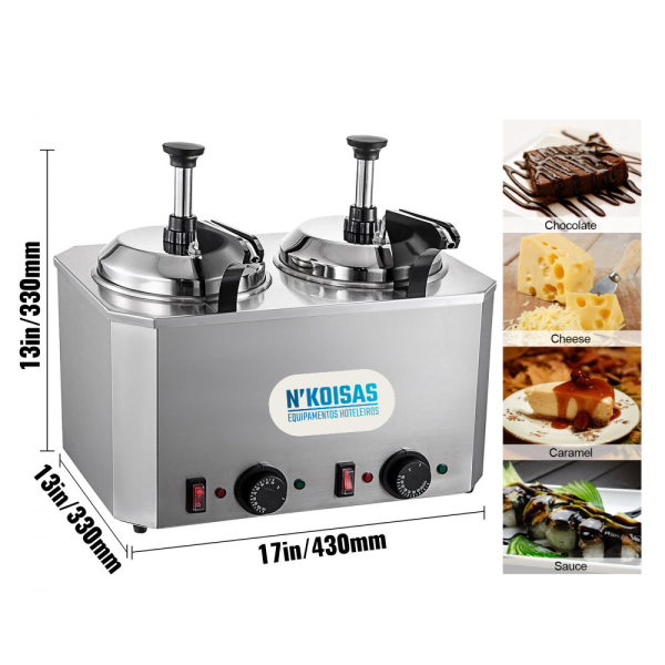 Pode ser usada para derreter queijo, doces quentes, caramelo, etc. Perfeito para lojas, quiosques, restaurantes, snack-bar, gelatarias, food-truck e cafetarias.