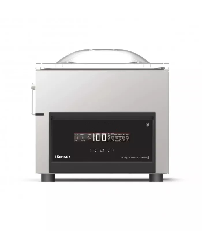 Máquina de vácuo iSensor 388x546x389 mm – Tampa: cúpula – Sistema de abertura: Automático – Bomba de vácuo de bucha: 8 (m3/h) – Potência (kW): 0,96 – Tensão (V/Ph/Hz): 230/L+N/50-60