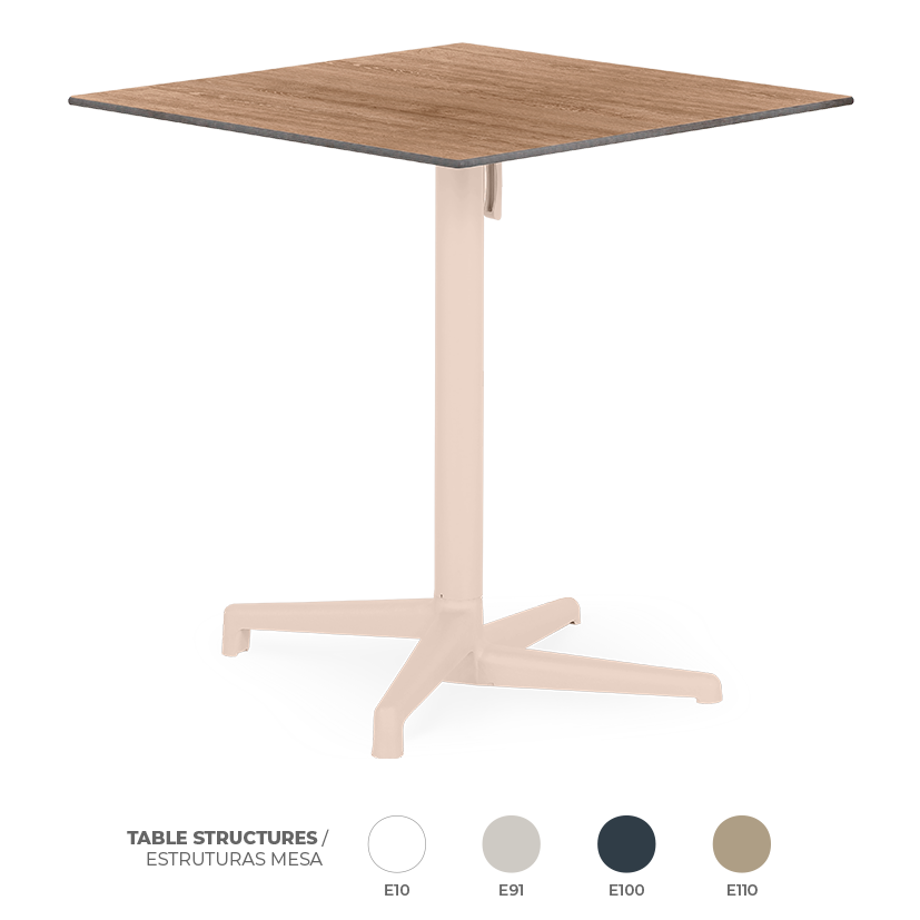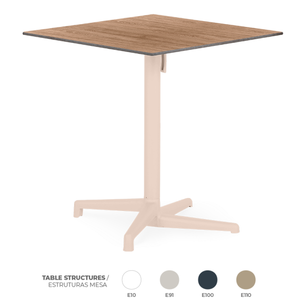 Mesa Boomerang Countryside Oak – Empilhável – Proteção contra UV – Reciclável – Dimensões: 69x69x70cm