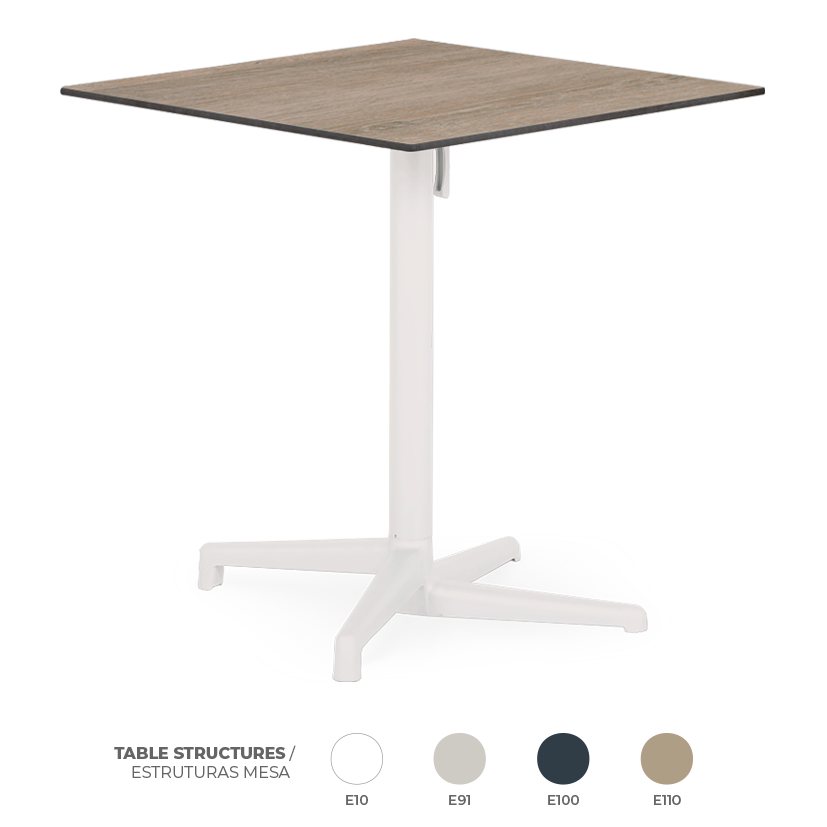 Mesa Boomerang Provincial Oak – Empilhável – Proteção contra UV – Reciclável – Dimensões: 69x69x70cm