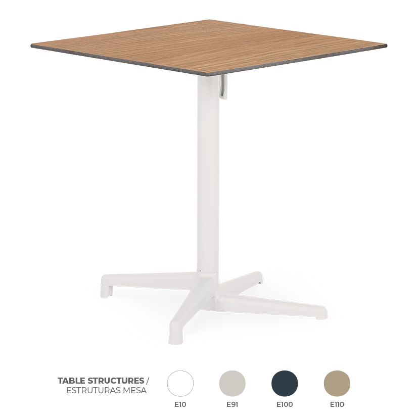 Mesa Boomerang Roble Lineal – Empilhável – Proteção contra UV – Reciclável – Dimensões: 69x69x70cm