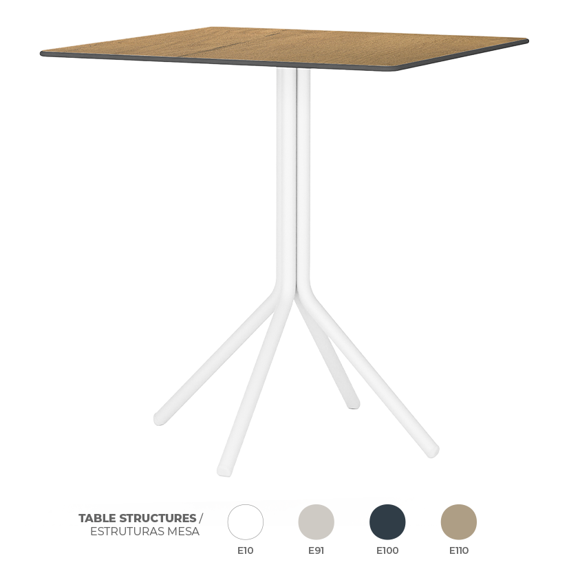 A mesa Daisy distingue-se pela irreverência da forma original dos seus pés com tacos de borracha anti-deslizantes.