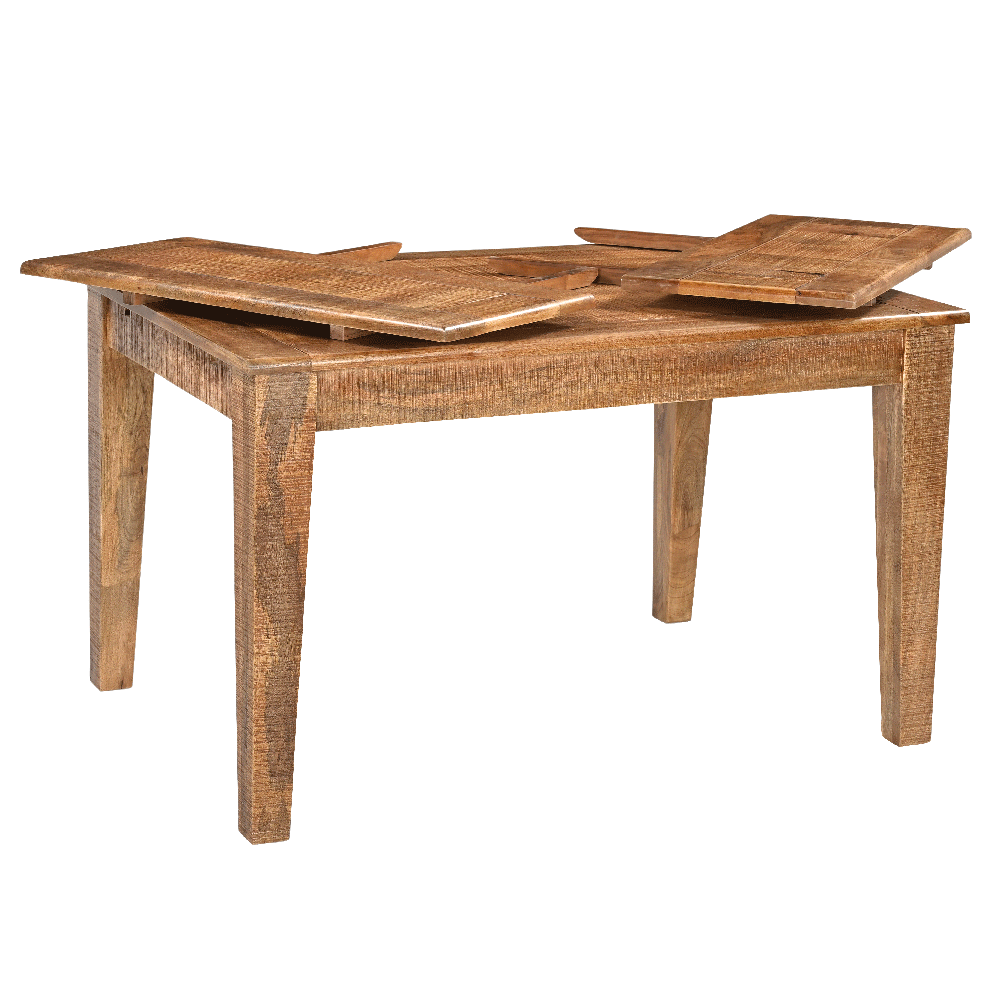 Mesa extensível Antalya, em madeira maciça, inteiramente feita à mão. Pés em madeira. Mesa extensível equipada com 2 folhas extensíveis de 40 cm. Ideal para decorar o espaço num estilo étnico. – Dimensões: 130/210x85x78cm