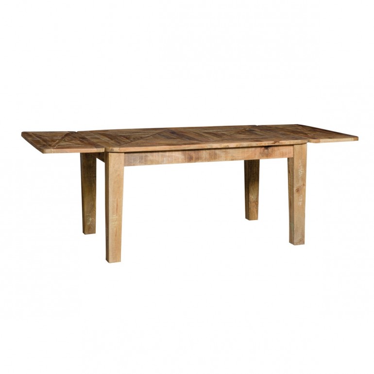 Mesa extensível Refrigerateur, em madeira maciça, inteiramente feita à mão. Pés em madeira. Ideal para mobilar o seu espaço num estilo étnico industrial. Mesa extensível com 2 tampos extensíveis de 40 cm. Uma mesa de madeira industrial é uma peça de mobiliário com um carácter forte e decisivo, perfeita para ambientes de estilo loft, moderno ou rústico.