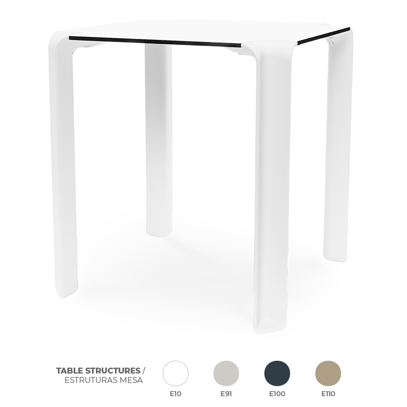 Mesa Iris Branco – Empilhável – Proteção contra UV – Reciclável – Dimensões: 70x70x74cm