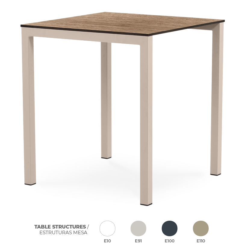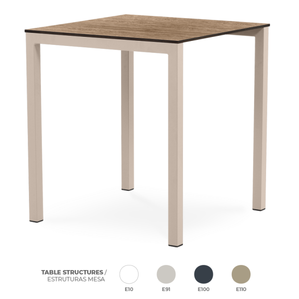 Mesa Metal Countryside Oak – Empilhável – Proteção contra UV – Reciclável – Dimensões: 69x69x75cm
