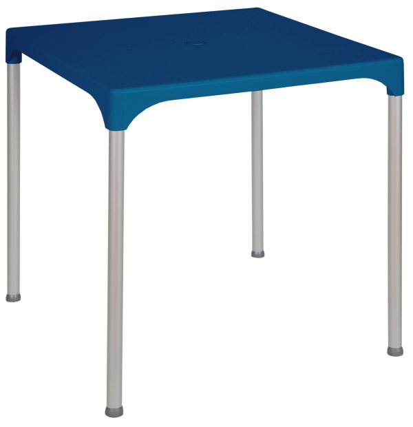 Uma mesa com múltiplas possibilidades de conjuntos. Aliamos a resistência do plástico e do alumínio a uma alargada variedade de cores, fazendo desta mesa uma excelente opção para o seu negócio. Personalize com a sua marca!
