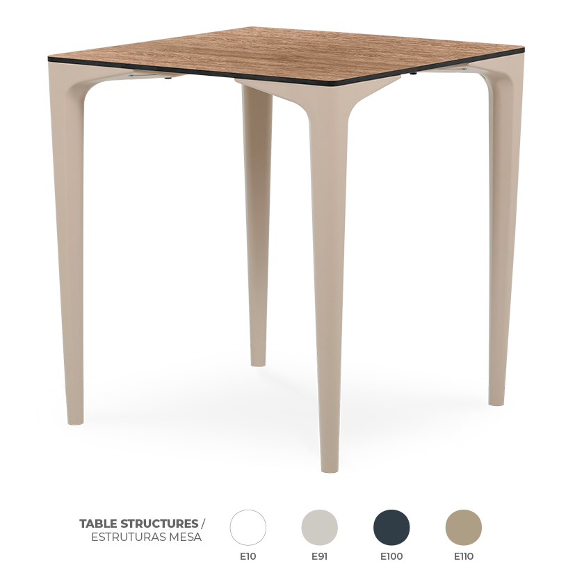 Mesa Spike Countryside Oak – Empilhável – Proteção contra UV – Reciclável – Dimensões: 69x69x74cm