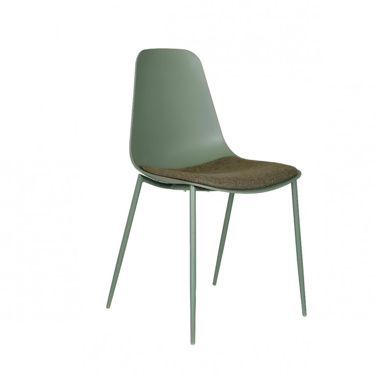 Cadeira Inès, cadeira em polipropileno verde e assento em tecido de trama larga com aspeto de algodão. Esta cadeira é a combinação perfeita de estética moderna e durabilidade. Ideal para a cozinha, sala de jantar, estabelecimentos comerciais, bares e restaurantes, num estilo simples e moderno. Materiais fáceis de limpar, ideais para o uso quotidiano. – Dimensões: 49x49x88cm