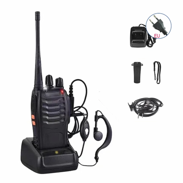 Incluido no pacote: – 4 x walkie talkies portáteis – 4 x carregadores UE – 4 x auriculares – 4 x clipes para walkie talkies – 4 x alças de mão – 4 x manuais de utilização