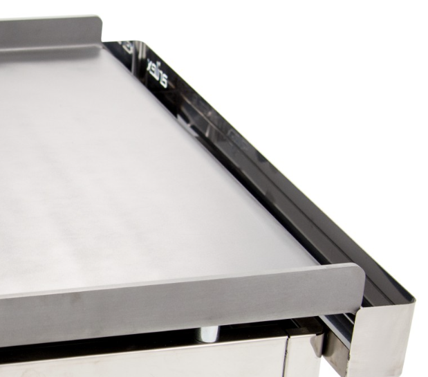 Coletor de gordura frontal de grande capacidade e facilmente removível, totalmente fabricado em aço inox.