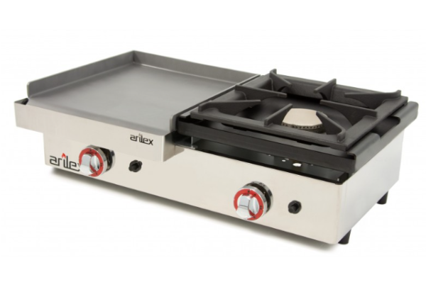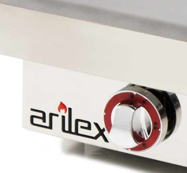 Queimador de design ARILEX com saída de chama em todo o seu perímetro garantindo uma distribuição uniforme de calor por toda a placa. Sem “zonas frias”. Alta potência de aquecimento com termopar de segurança.