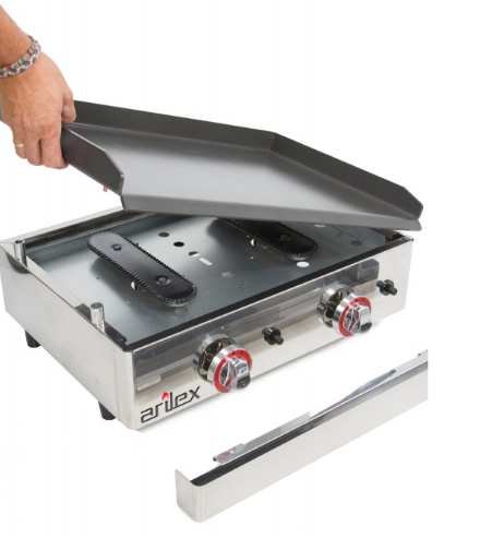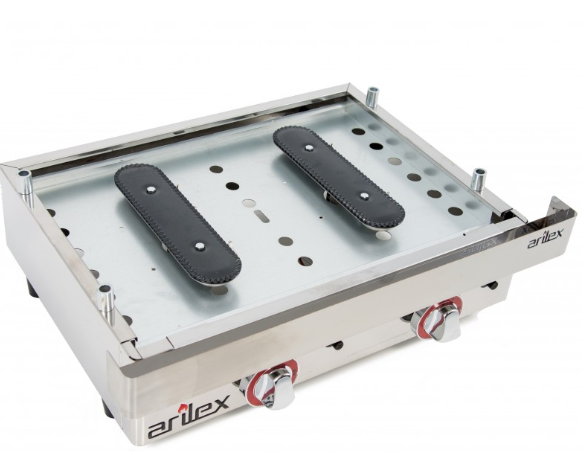 Queimador de design ARILEX com saída de chama em todo o seu perímetro garantindo uma distribuição uniforme de calor por toda a placa. Sem “zonas frias”. Alta potência de aquecimento com termopar de segurança.