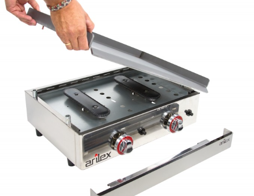 Queimador de design ARILEX com saída de chama em todo o seu perímetro garantindo uma distribuição uniforme de calor por toda a placa. Sem “zonas frias”. Alta potência de aquecimento com termopar de segurança.