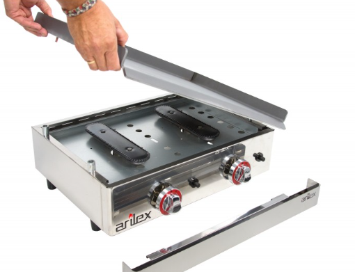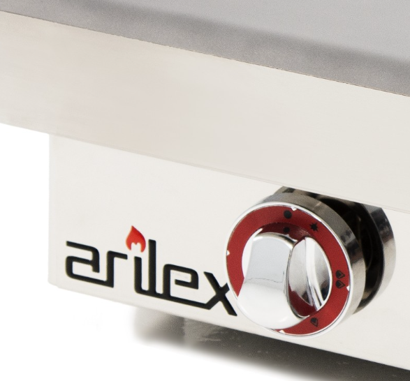 Queimador de design ARILEX com saída de chama em todo o seu perímetro garantindo uma distribuição uniforme de calor por toda a placa. Sem “zonas frias”. Alta potência de aquecimento com termopar de segurança.
