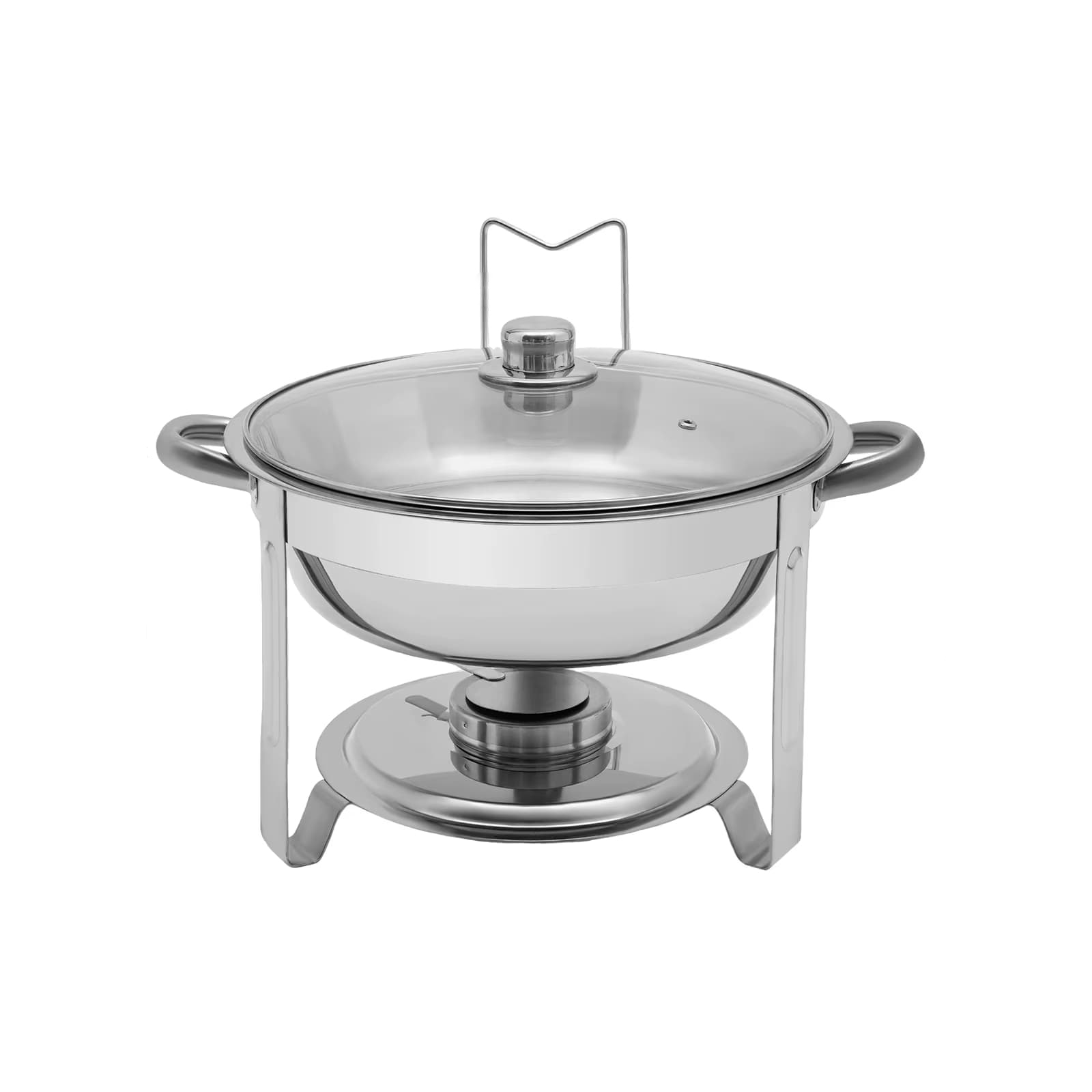 Rechaud / Aquecedor de alimentos para buffet redondo 5L em aço inoxidável prateado