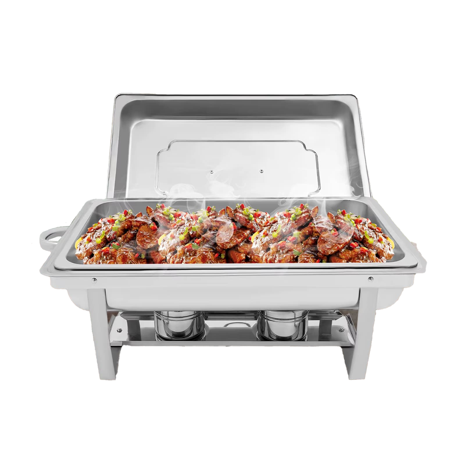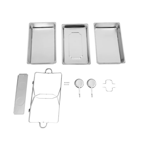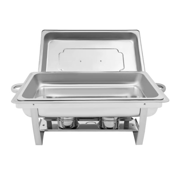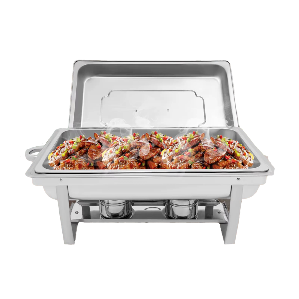 Rechaud / Aquecedor de alimentos para buffet retangular 9L em aço inoxidável – Tamanho do produto: 62x34x31cm