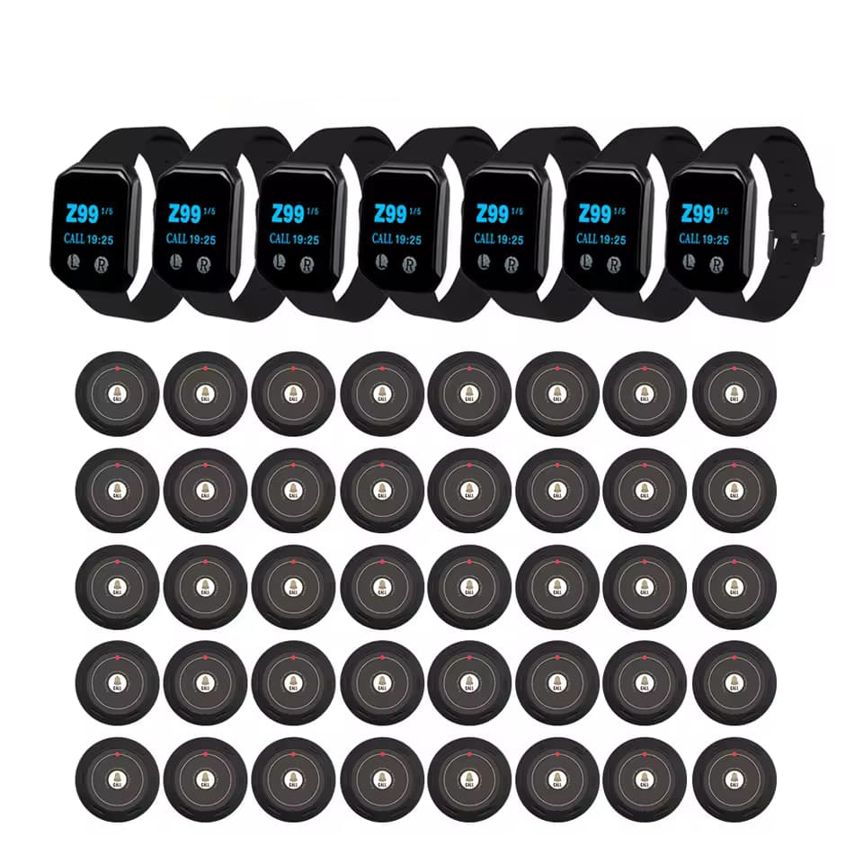 Sistema de chamada para restaurante / Beeper / Pager, 40 discos e 7 relógios, alcance 80m – Sistema sem fios – Fonte de energia: bateria de lítio recarregável – Tamanho do disco: 60x60x9.9mm
