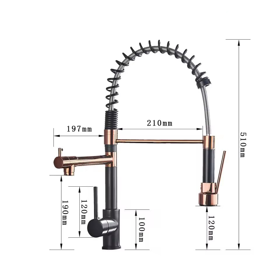 Dados técnicos – Controlo: alavanca – Tipo de bico: retrátil – Montagem: vertical – Torneira misturadora água quente e fria – Material: latão – Acabamentos: cromado/bronze preto/níquel escovado