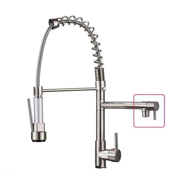 Torneira de Chuveiro com misturador de água quente e fria e guindaste com bico duplo – Controlo: alavanca – Tipo de bico: retrátil – Montagem: vertical