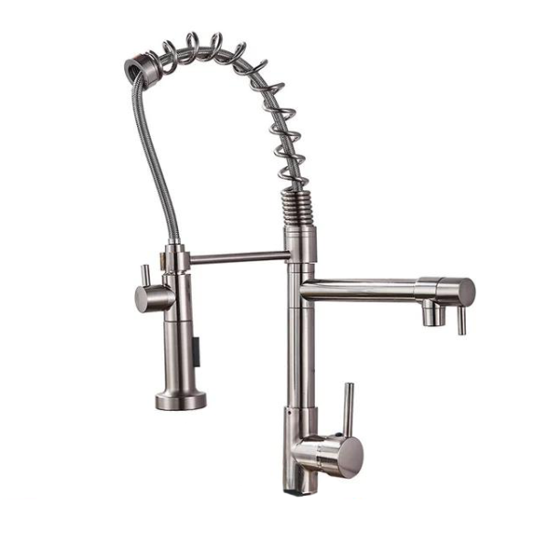 Torneira de Chuveiro com misturador de água quente e fria e guindaste com bico duplo – Controlo: alavanca – Tipo de bico: retrátil – Montagem: vertical