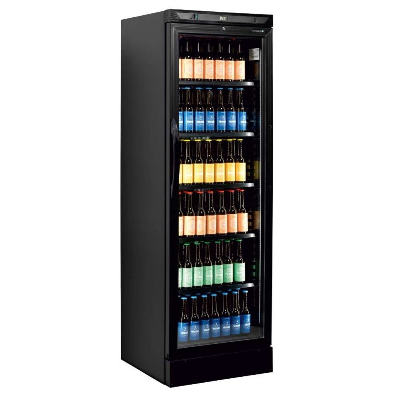 Características técnicas – Este vertical refrigerado é perfeito para manter as bebidas frias, tanto em lojas grandes como pequenas, charcutarias, cafetarias, restaurantes, cantinas, escritórios, ginásios, etc. – Porta com dobradiças de vidro duplo temperado. – Luz LED situada no aro da porta. – Exterior e interior em chapa de aço pintada. – Prateleiras reguláveis em altura que proporcionam uma grande versatilidade para expor qualquer tipo de produto. – Medidas das prateleiras: 490×360 mm. – Arrefecimento estático assistido por ventilador. – Sistema de evaporação automático. – Equipado com termómetro e controlo de temperatura por termóstato mecânico. – Gás ecológico R600a. – Categoria climática 4. – Tensão: 220-240V. – Rodas para facilitar a deslocação e pés reguláveis em altura. – Equipado com fechadura de série. – Capacidade em bidões de 33 cl: 455 unidades. – Classificação energética: D
