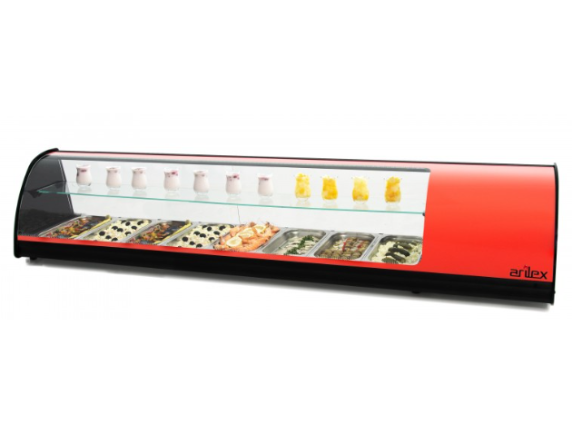Vitrine refrigerada de sushiMedidas: 1808x390x287Equipamento disponivel para aluguer 147€ por dia.Para um orçamento mais detalhado entre em contacto conosco via WhatsApp.